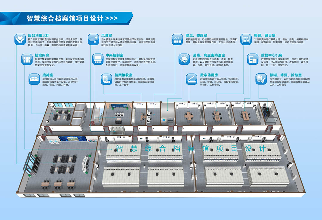 其中,GB/T 50325 在环境污染物控制领域提供了强制性依据,而防火分区与承重计算需依托 JGJ 25、GB 50016 等标准。实际工程中,需结合档案类型、建筑条件及运营需求,通过技术经济比选确定最优设计方案,并严格执行施工验收规范,确保档案实体与信息的长期安全保存。